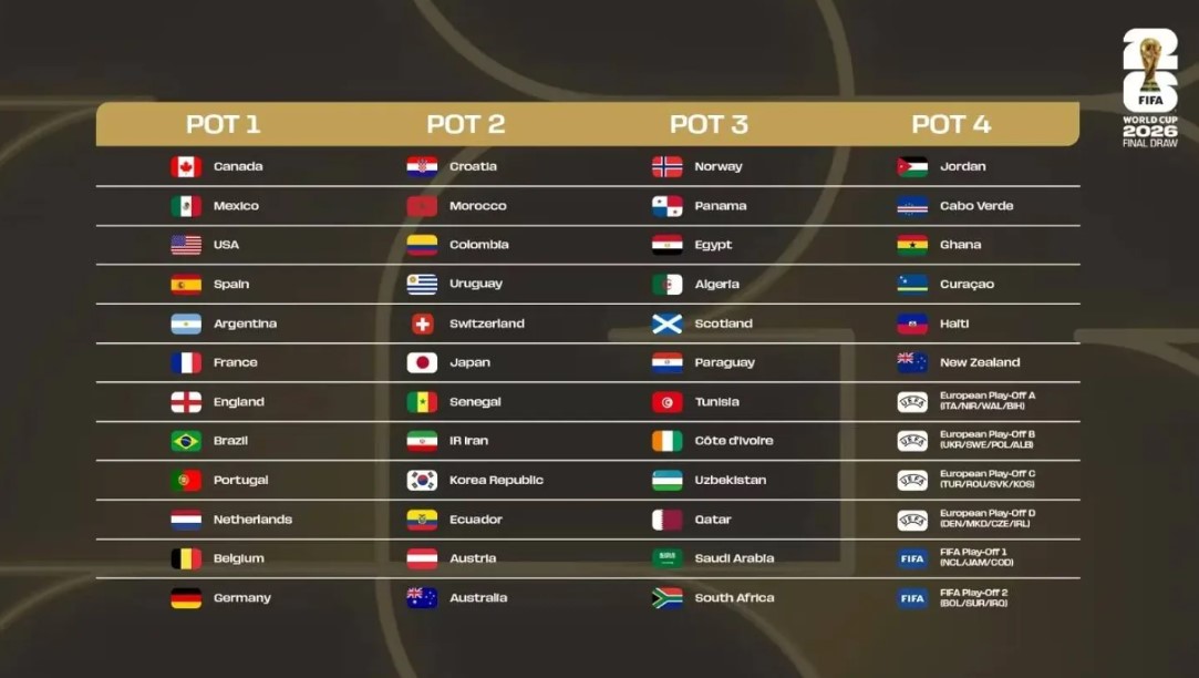 وأشار ”فيفا” في بيانه: ”ستبدأ مراسم القرعة بسحب المنتخبات من الوعاء 1 إلى المجموعات من الأولى إلى الثانية عشرة، ومن ثم يستكمل سحب المنتخبات بالترتيب من الأوعية 2 و3 و4″.