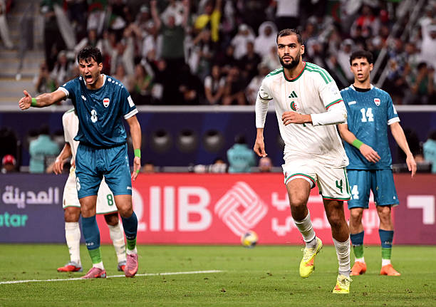 بداية اللقاء كانت مثيرة، حيث تلقى لاعب منتخب العراق حسين السعدي بطاقة حمراء مباشرة إثر تدخله القوي على الجزائري ياسين براهيمي (د5).