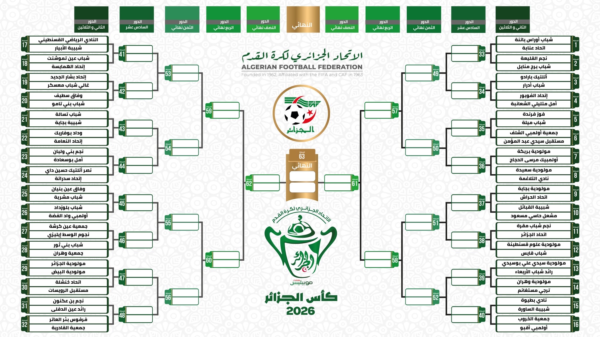 وفيما يلي البرنامج الكامل لقرعة كأس الجزائر